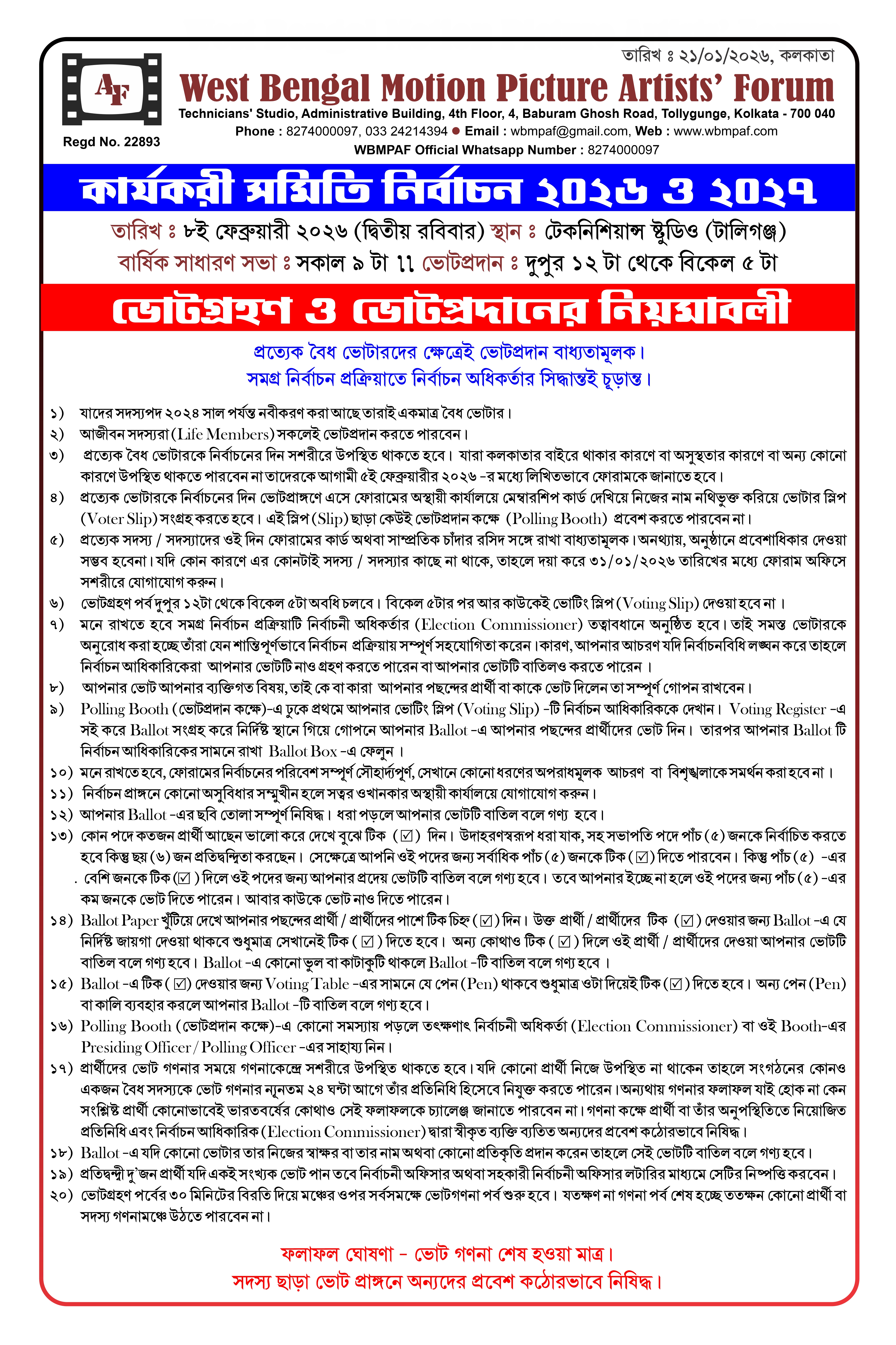 Since then the Forum has not only confined its activities within the industry but also spread its wings to help the society at times of distress. WBMPAF plays an important role in the industry so as to maintain a healthy working atmosphere by building cordial relationship among the producers, directors, technicians, channels and all other associates, directly or indirectly related to the working space.